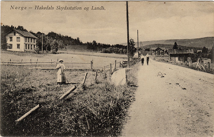 GAMLE BILDER: «Hakedal skydsstation og Landh.» står det på dette